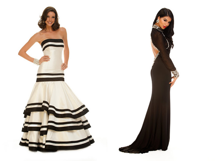 I LOVE these two ladies. Since I grew up in Venezuela, I have--and will always have a personal affinity to the Venezuelan beauties and I am a big fan of Miss USA 2010, Rima Fakih but I was, as Michael Kors would say "underwhelmed" by their choices for these "Preview Gowns". *I do like the contrast of the black and the ivory-creme in Miss Venezuela's gown , and the fit (especially at the bust and torso is exquisite) but it just doesn't scream "Miss Venezuela" the way that I would expect (you know she is "busting out" with a completely different gown for the Finals!).