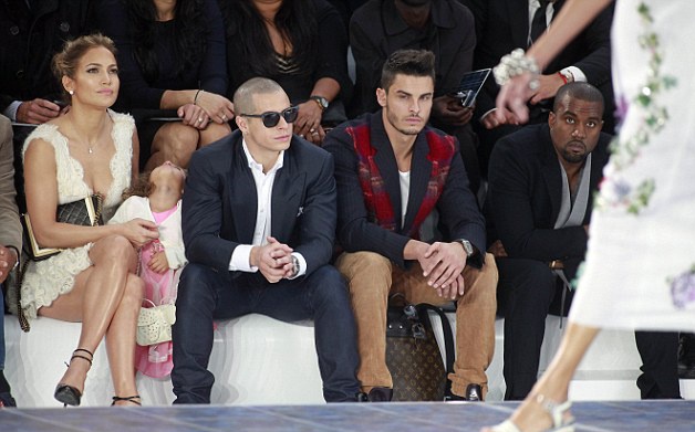 As usual, the show was schizophrenic with tons of ideas being thrown out to the eager fashionista public, who loved it all. In the audience were Jennifer Lopez with her little cute daughter Emme and Casper, JLo's boyfriend. They all sat sandwiched between photographer Patrick Demarchelier, Lagerfeld Boy Toy Model-Muse Baptiste Giabiconi and Kanye West.